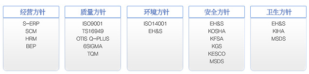 1.未来经营-经营方针 2.清洁管理-卫生方针 3.技术管理-质量方针 4.安全管理-安全方针 5.绿色经营-环境方针